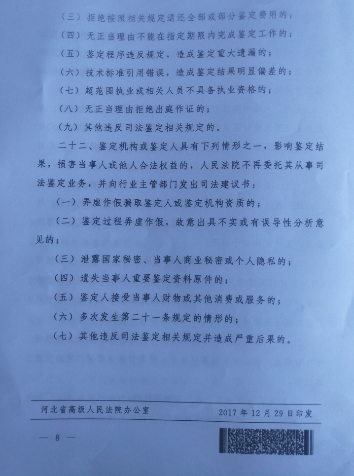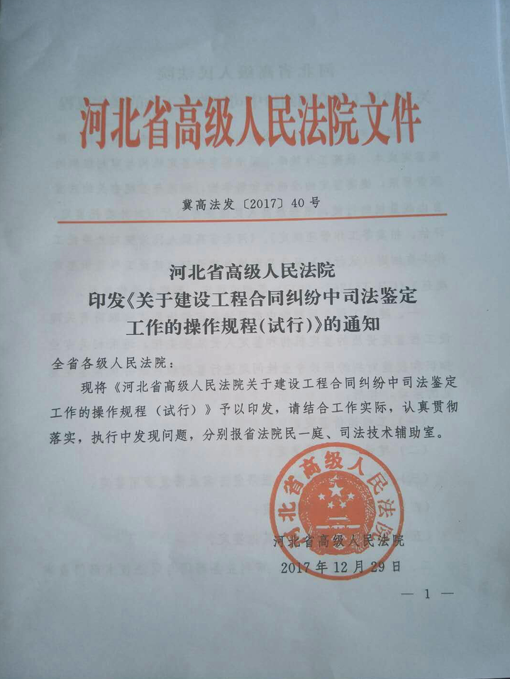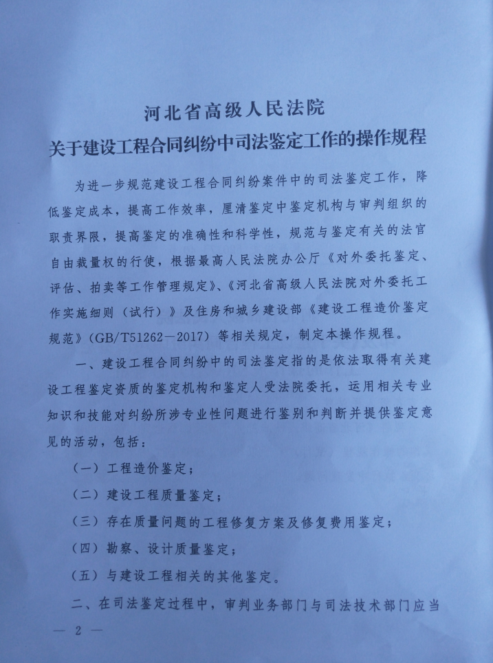 河北省高級人民法院印發(fā)《關(guān)于建設(shè)工程合同糾紛中司法鑒定工作的操作規(guī)程(試行)》的通知